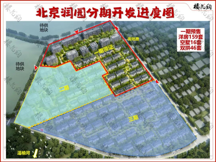 第一期已经取得两个预售证,共计推出平层洋房159套,空墅16套,双拼46套。